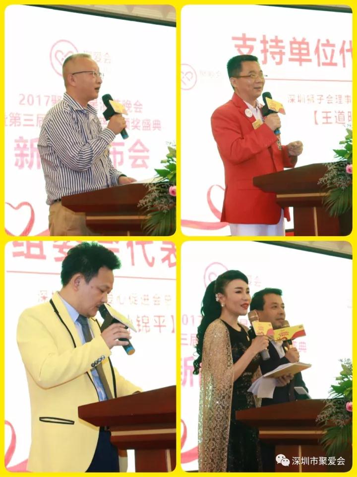 在發布會上,聚愛會總會常務副秘書長趙安妮介紹了到場嘉賓;顧問委員會主席張紅象發布2017聚愛群星演藝晚會暨第三屆聚愛公益慈善頒獎盛典評選標準和策劃亮點及七大獎項設定:終身成就獎、愛心公益人士特別貢獻獎、慈善人士杰出貢獻獎、愛心機構卓越貢獻獎、愛心企業突出貢獻獎、聚愛公益慈善傳承獎、聚愛正能量風云人物獎,并公開面向社會各界評選、推選各獎項的提名。主辦單位深圳市聚愛促進會總會會長陳曉杰動情地介紹了聚愛會成立12年以來的公益慈善愛心歷程,并充分闡述了此次公益慈善頒獎盛典 “聯益”的重要意義。深圳市慈善會副秘書長董昕、市義工聯代表汪克非、深圳獅子會理事、分區主席王道明依次登臺發言,對歷屆和此次活動表示充分肯定與支持。